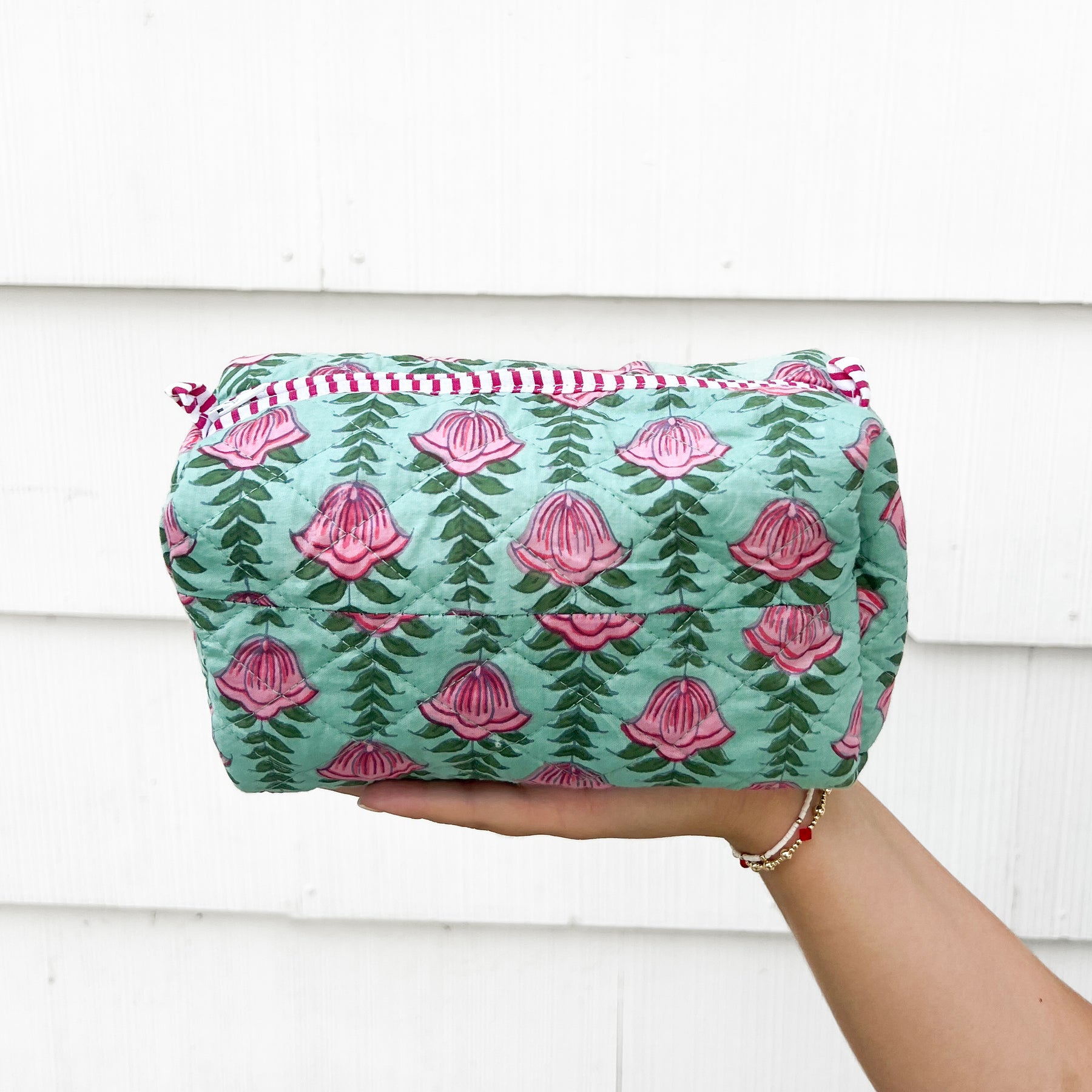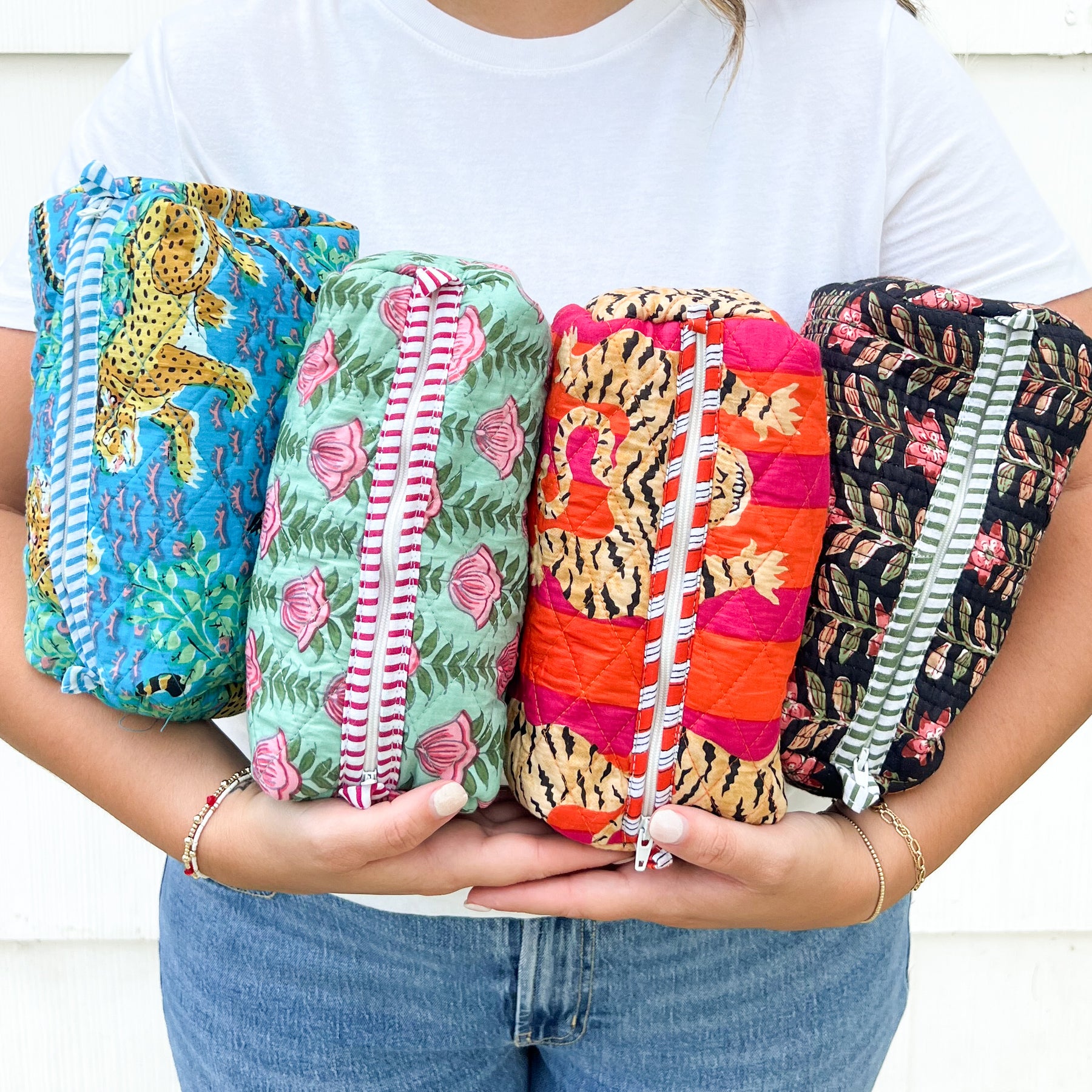 Fall trends are here—and quilted fabric is in! The Medium Quilted Bag is ideal for travel-size toiletries, cosmetics, or tech accessories like chargers and earbuds. It’s the perfect blend of style and organization for life on the go.